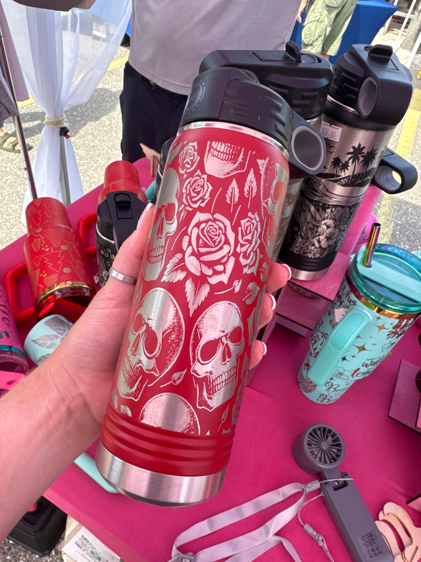 Skulls & Roses | 20oz Laser Engraved Water Bottle | Full Wrap